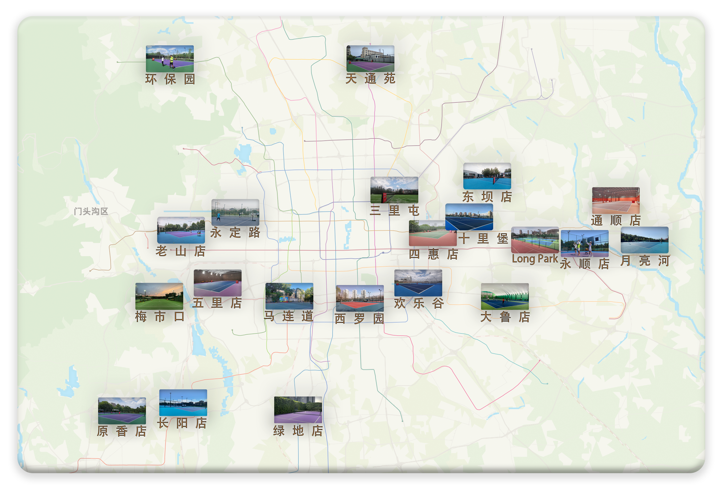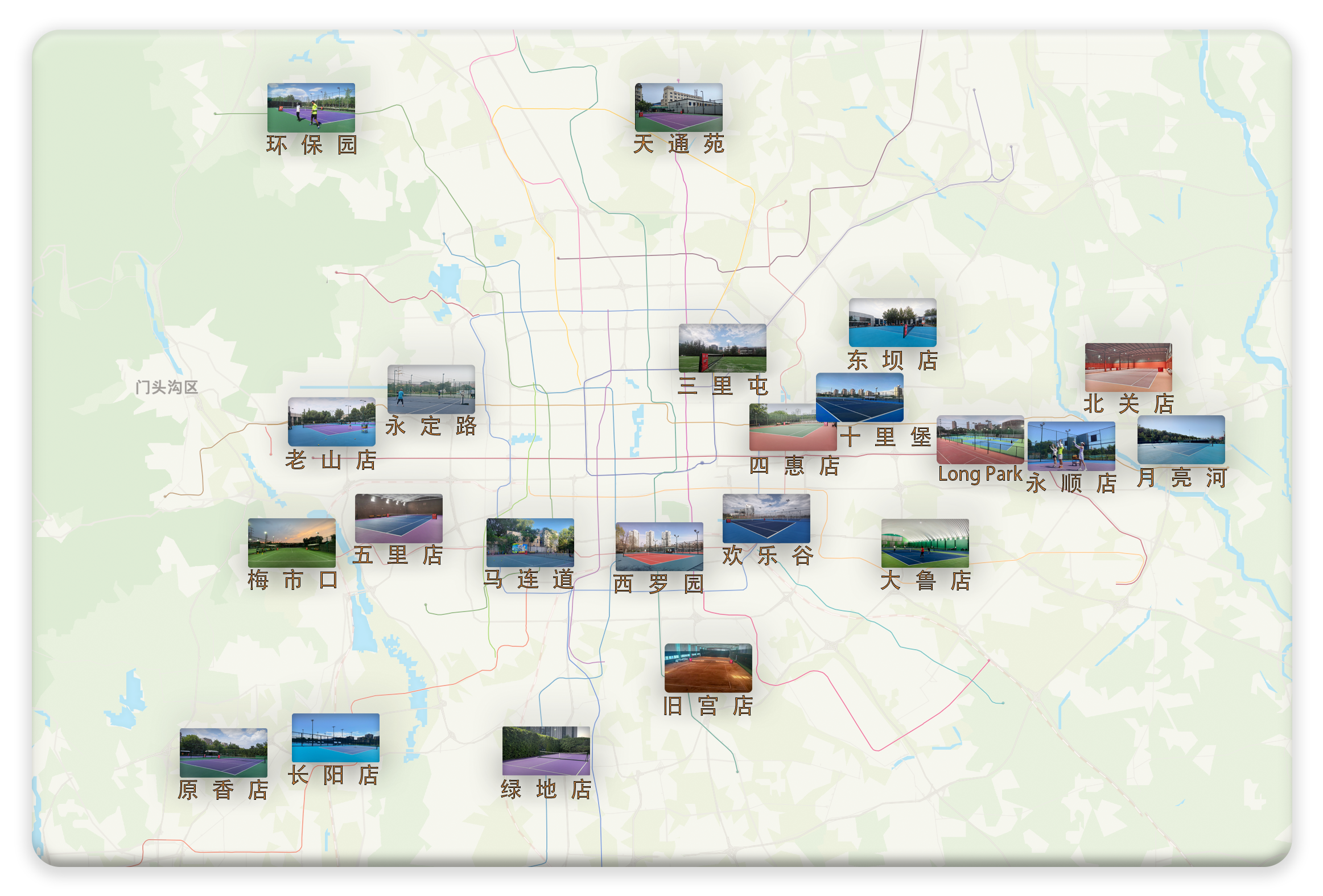 得乐网球目前所直营的室内外网球场馆数量众多,各城区基本都有直营场馆,在保证上课质量的同时,能为学员提供便捷的场地服务和网球活动。