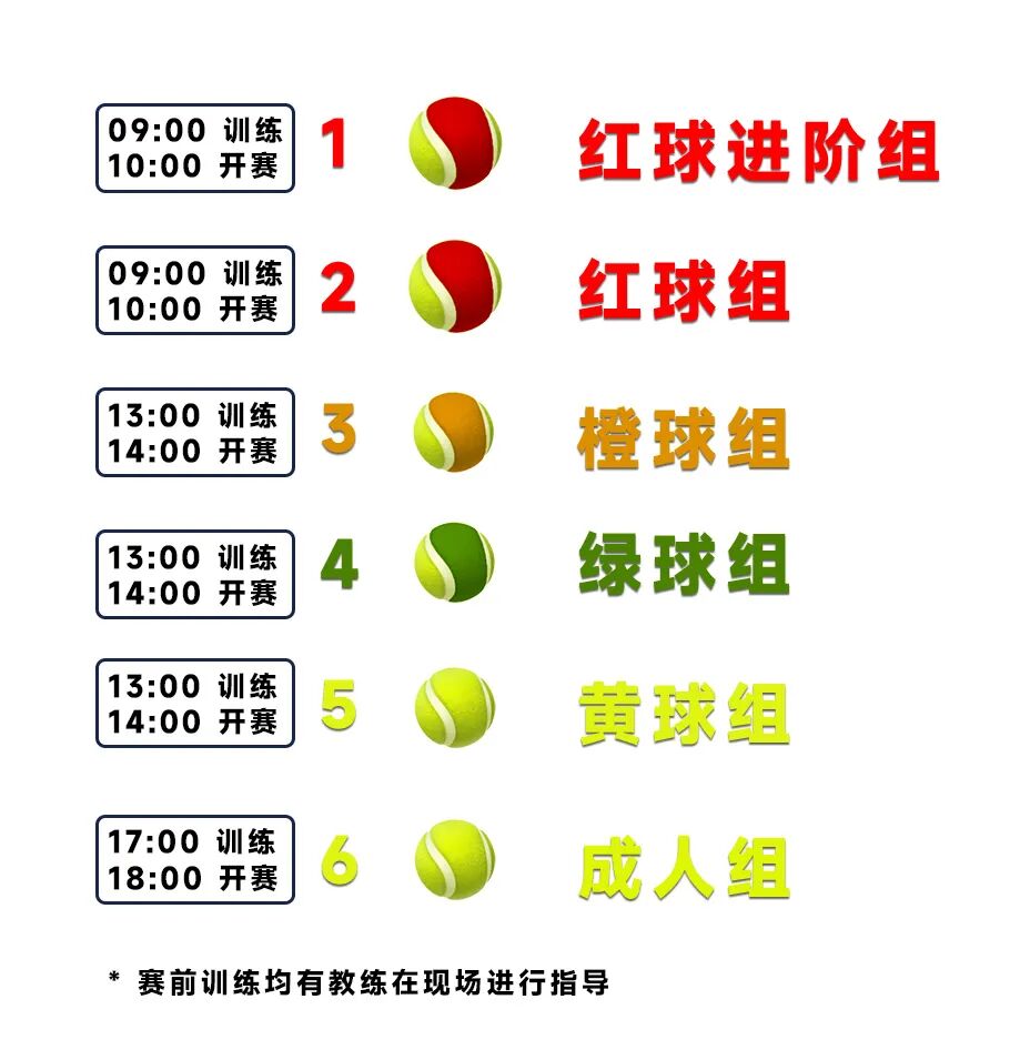 红球进阶组、红球组、橙球组、绿球组、黄球组、成人组。